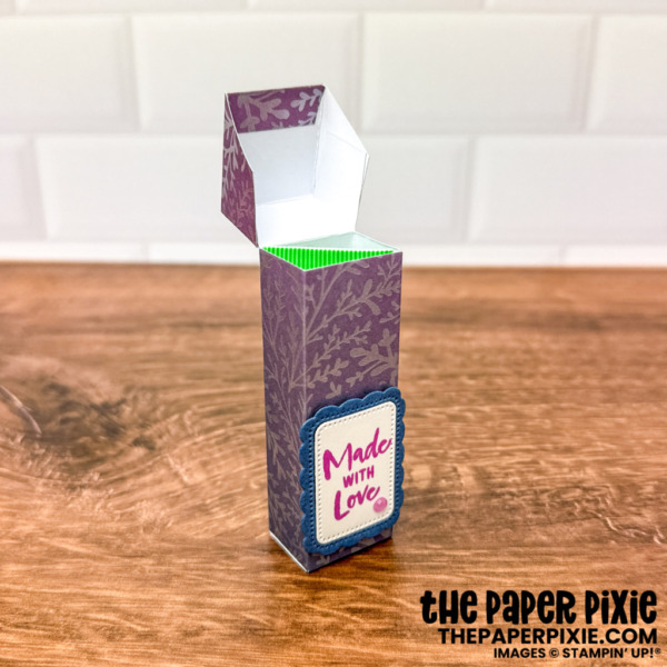 This flip-top gift box was so fun to create! I was inspired by this project shared by Heather Forgan at Stamp with Nellie.
